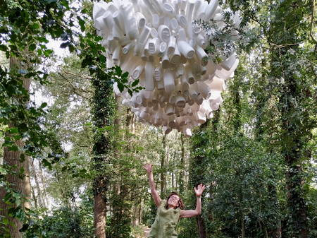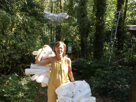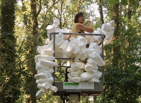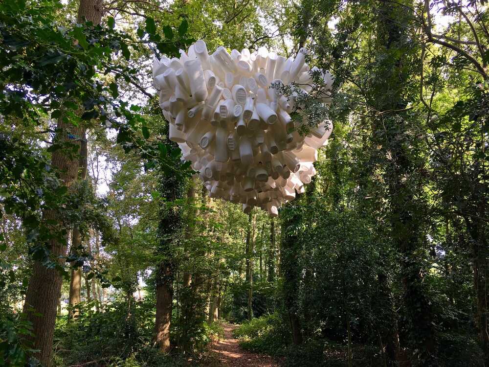 My first 'Cloud' hung in IJhorts in 2019 during the art tour 'Grensloos Kunstverkennen' and at that time consisted of over 600 white laundry and detergent bottles, collected over the years with the help of family, friends and strangers. For the 2019 Grensloos Kunstverkennen exhibition, residents of De Wijk and IJhorst also collected their plastic detergent bottles.