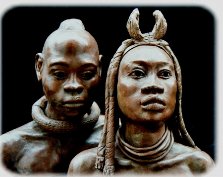 These are my personal favorites, Himbas, from Namibia, a woman and a man, as created during a visit to Namibia. Amazing people, they cover their bodies with a red dye, living the way they have lived over thousands of years.