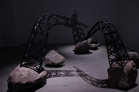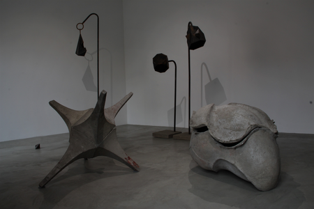 A composition (as a single work or installation) consists of several sculptural objects that create a certain associative relationship, mood, and atmosphere. I was inspired by the relationship between nature and civilisation, the industrial legacy (disused railways, old factories, former military sites, and various related infrastructures), and, more specifically, the processes of decay and change that take place in such sites.