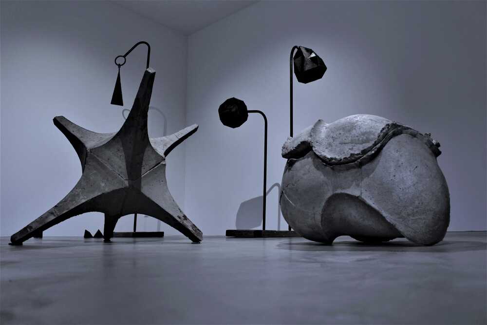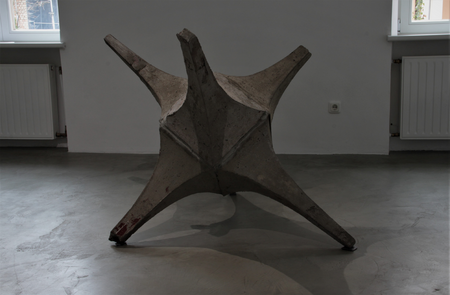 The composition, or rather a situation (mise-en-scène) created from sculptural objects, is like a vision of a hypothetical future, inspired by the relationship between civilisation and nature. At the same time, it is a look through a surreal or futuristic prism. As in the “zone” described by the brothers Arkady and Boris Strugatsky (in the novel Roadside Picnic), I want the viewer to have the feeling that something is “not right” and that something could happen at any moment. Levitation, tension, a sense of change, a favourable time for something to happen that is difficult to define and can only be sensed.