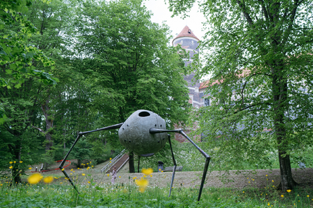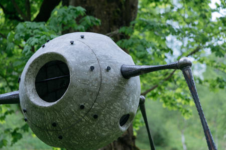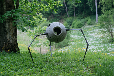 In the sculpture, a concrete hollow lump hangs on the legs of a spider. Something unidentified and menacing standing on spider legs is an archetypal horror image widely used in pop culture ("Stranger things", "Lord of the rings"). At the same time, I noticed that quite a few of my acquaintances have a fear of spiders. Arachnophobia is one of the most popular phobias. (I wonder if this fear arises empirically, or is it introduced by pop culture?) This way of constructing the sculpture brings a sense of dream into reality - a massive concrete object hanging on thin metal legs defies the known laws of physics. In order to achieve this impression, one has to solve various engineering challenges, which are an integral part of creativity in the field of sculpture.