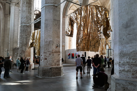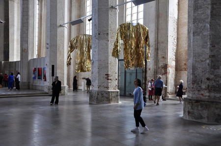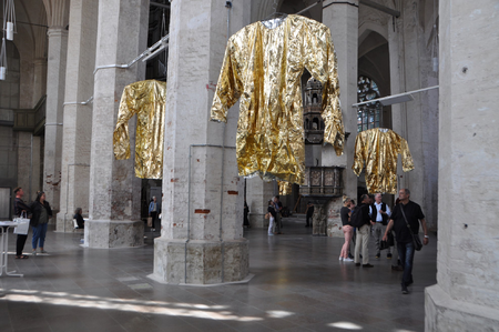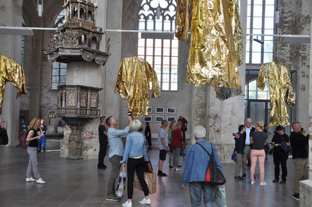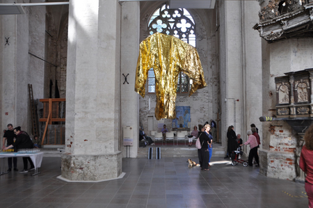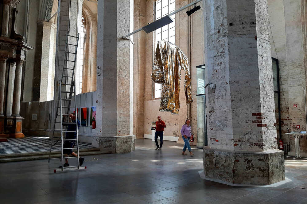 Hundrich's work can thus be understood as a universal message that resonates across cultures, nations, and generations. His installation shows shirts consisting of rescue blankets. Here, the golden side is turned outward, for attention, the silent call for help. The silver side, turned inward, so that one's own body heat is not lost.