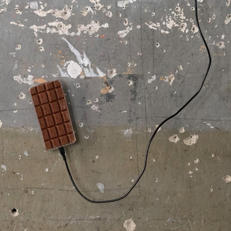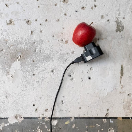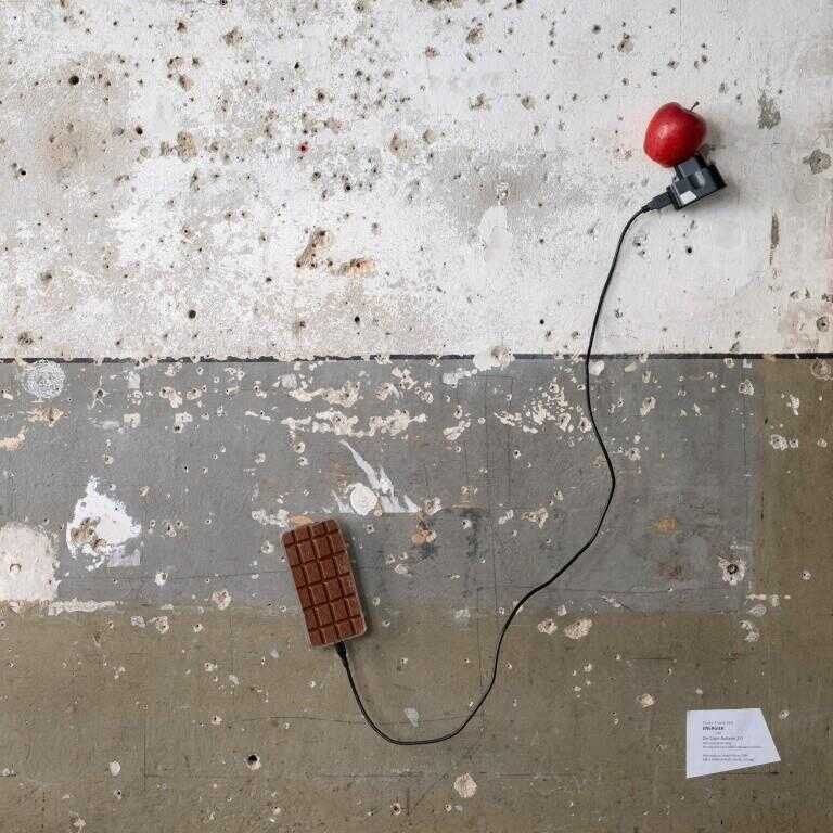 Der Apfel, Symbol schweizerischer Freiheit und gesunder Natur, speichert Sonnenenergie. Diese wird über das dem Geländeprofil folgende Kabel von den Bergen in das dicht besiedelte Flachland in Elektrogeräte, Elektromobilität und smarte Gebäude transportiert. Die Schokolade, Symbol des kolonialistischen Luxus, verweist trotz „fair-trade“-Label auf ausbeuterische Billigimporte, die den Grund für den Stromhunger bilden.