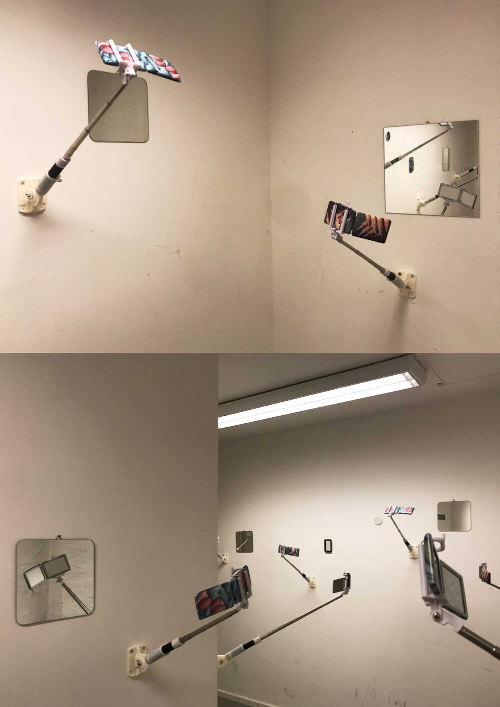 It is no longer about what the place you visit really gives you, it only counts through the presence of the ego and is actually ‘de-localised’ through the arbitrariness of the constantly repeated selfies, completely trivialised and thus devalued and the viewer's perception manipulated. There are hardly any limits to self-portrayal and infatuation, the ego is always in the foreground in the truest sense of the word, and that is why an empty space is chosen for this, which reflects nothing but this emptiness of content. Selfie reflection initially sounds like self-reflection, which in principle it is, even if only in the physical and physical sense.