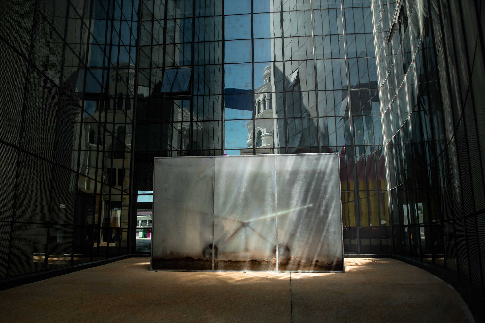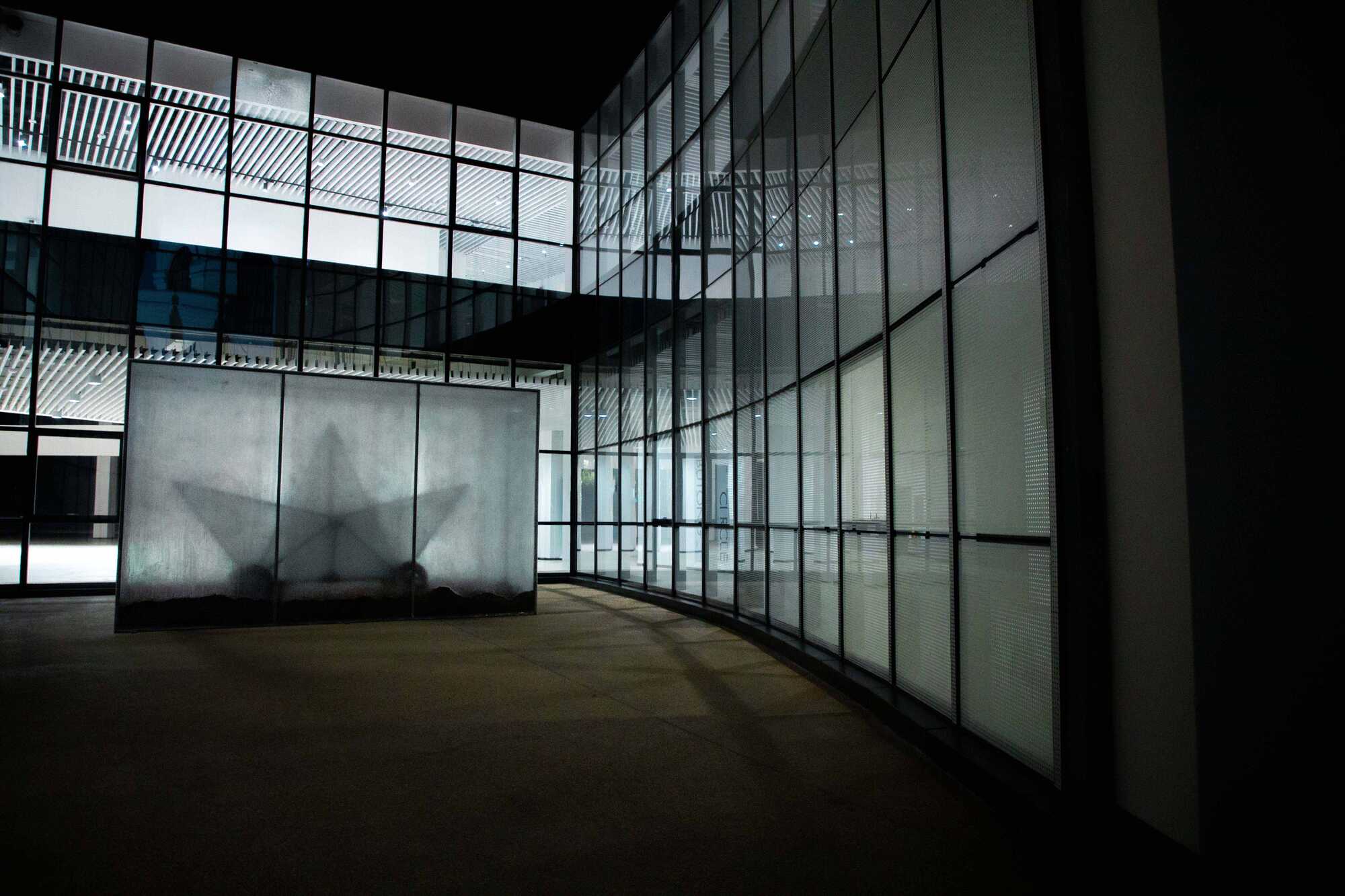 Prime Vessel is a permanent installation at the Beidaihe Da Butong Art Park, created as part of a residency SSG took part in over the summer of 2025 at the time of the park's official opening. Hidden in the interior of a museum like a vitrine, standing on a lost island of sand, is a paper boat on wheels. The Prime Vessel rests hidden in an alcove within its fibreglass box, momentarily appearing and then disappearing with the endlessly changing light, echoing fleeting, primal memories that emerge momentarily through the fog of time only to disappear once more. Light filters through Primal Vessels' translucent walls, casting dynamic shadows that shift with the viewer's perspective on the nonlinear fluidity of time.