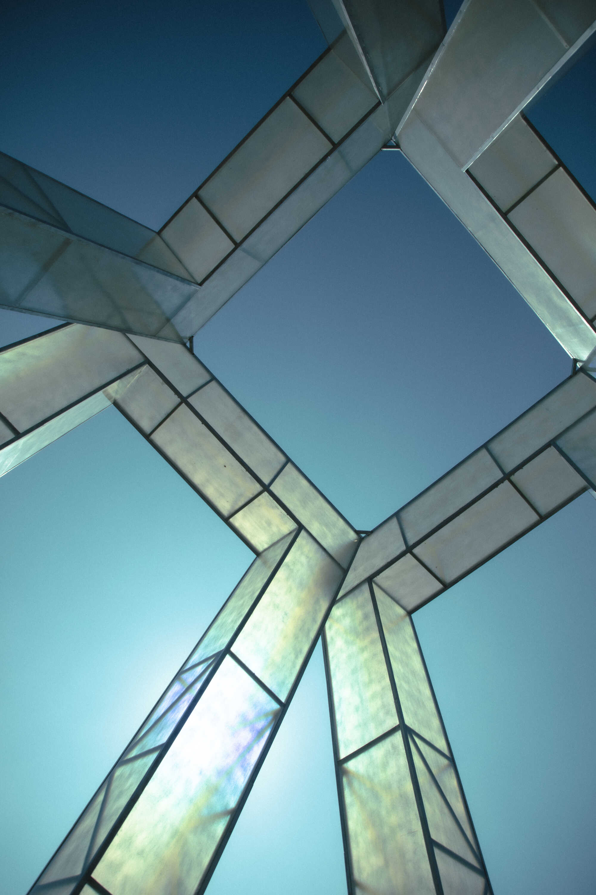 SSG was invited to create the monumental 14-metre-high Cave of Invisible Reflections for the opening of the Beidaihe Da Butong Installation Park in China in 2024, where it remains permanently installed. Clad in a translucent fibreglass skin, the work reflects and diffuses light, producing rainbows of reflection over the glass-like surface in daylight. A surface through which hints of its internal steel frame glimmer through, mapping its structural rhythm and adding depth to its form. At night, integrated neon lighting transforms the piece into a glowing beacon, its ethereal presence animated by shifting hues. The interplay of fibreglass and exposed steel brings a Constructivist edge, while the illuminated sculpture becomes a focal point for gatherings, particularly during nearby music festivals.