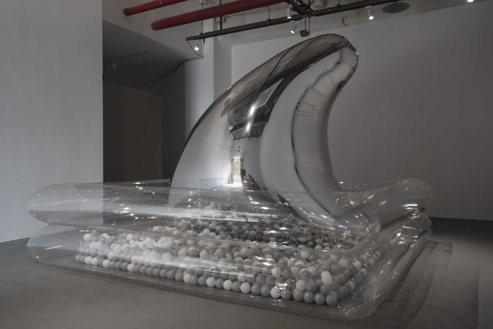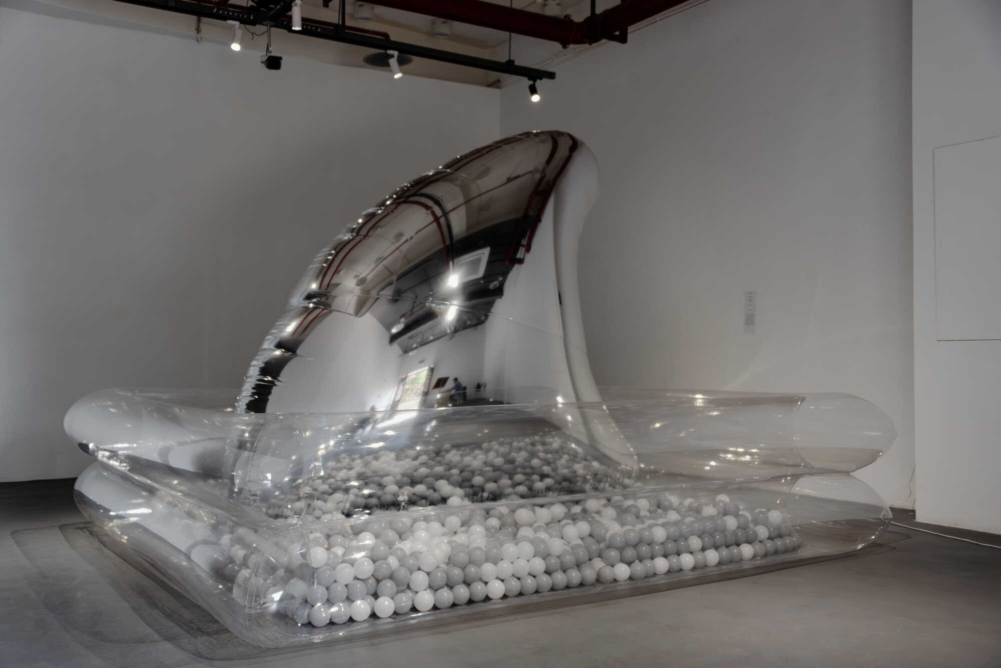 Navigate a Life was exhibited as part of SSG’s solo exhibition, Is the Fake Real? at the Yunling Art Centre, Chongqing (2024). The inflatable work, accompanied by the sound of the sea, reflects on how we navigate the boundary between illusion and reality—where containment, reflection, and play merge into a single, drifting experience.