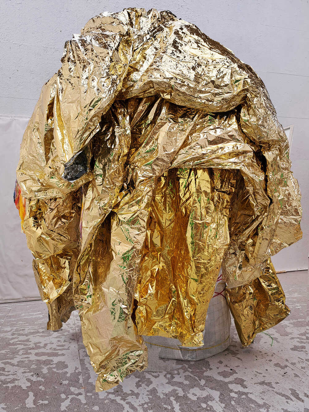 Layer by layer, the rescue shirts are placed over a pre-constructed column,