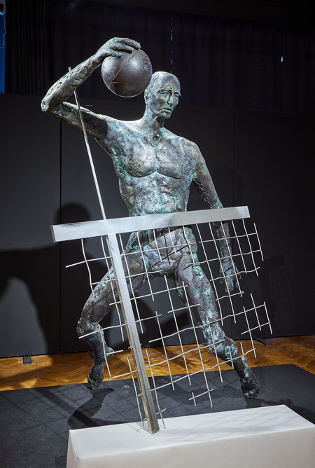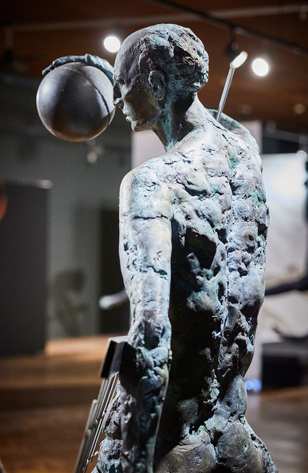 Balancing sculpture, proprietary synthetic composite, steel, height 210 cm