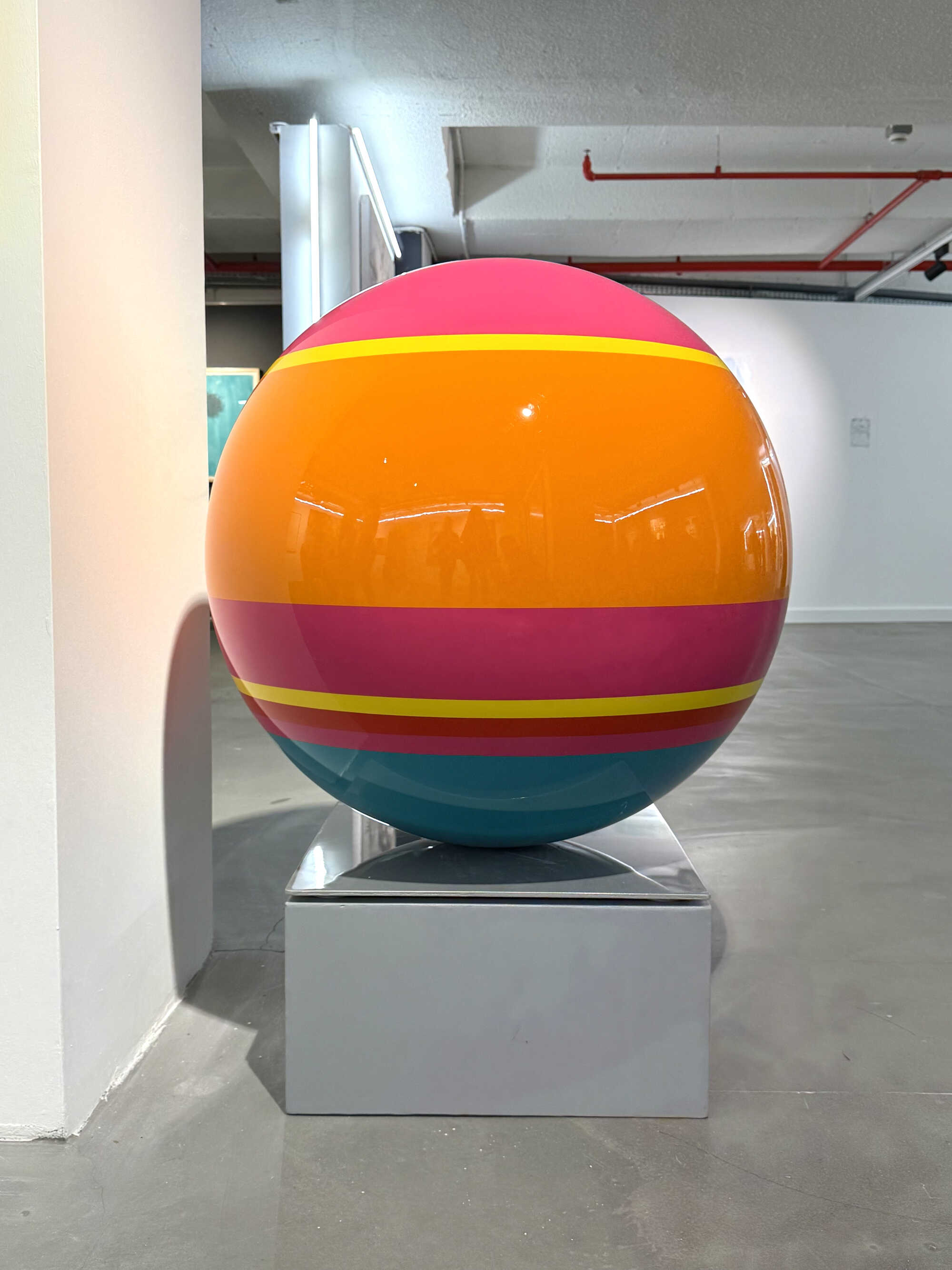 Inspired by childhood objects such as beach balls, candy, marbles, and playground toys, the work distills the essence of early happy memories into a contemporary public-art form.