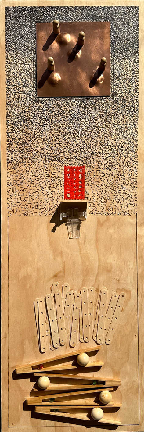 The word liminal refers to change from one state to another, occupying a position at a boundary or threshold. This collection of work repurposes items found in hardware stores, items that had a specific use but which are transformed through conceptual and aesthetic juxtaposition to create a strange perversity of coexistence.