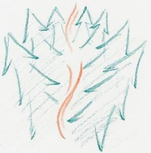 Die rostende Stahlplatte erinnert an Kriegsmaterial. Die ausgestanzten Namen und Symbole erzeugen eine Durchlässigkeit, welche zusammen mit der bestehenden Hecke auf die Vergänglichkeit und die ins Land ziehenden Jahreszeiten verweist.Â