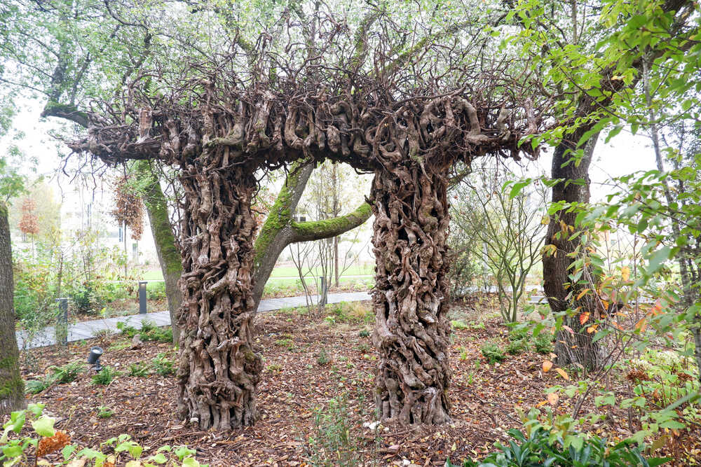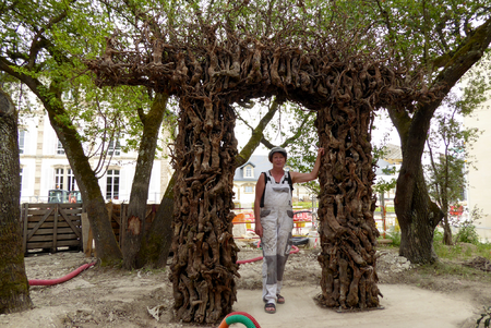 Cornelia Konrads lives and works in Barsinghausen, Germany. Whether permanent or ephemeral, her in situ creations in public spaces and private gardens have made her a key figure in Land Art. The artist often uses materials she finds on site – in this case, old grapevines, gathered on the vinyeards of Maison Ruinart. Her sculpture "the arch" mirrors the design of the classic facades of the main building as well as the arched underground cellars, where the vine transforms into champaign. Soaring into the air, the vine shoots provoke astonishment and wonder, gracefully and humorously suggesting the creative powers at work in nature.