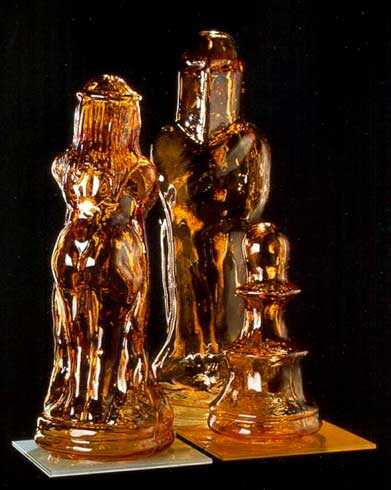 jeweils in Form geblasen, farbiges Kristallglas.