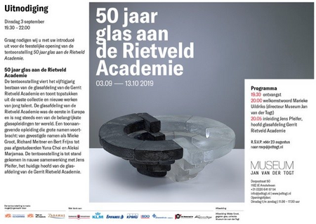 The Glass departmenet of the Rietveld Academy is 50 years old and celebrates this event with a number of exhibitions, both national and international.
