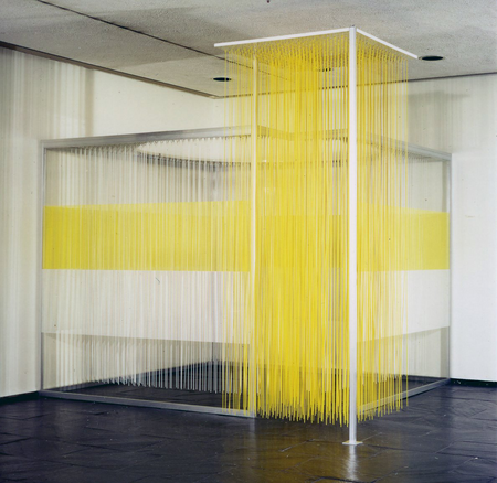 Bild: Jesús Rafael Soto, Penetrable blanco y amarillo, (White and Yellow Penetrable), 1968, Painted metal, aluminium frame, and silkscreen on Plexiglass panels, 250 x 300 x 300 cm, Private collection, © Jesús Rafael Soto, ADAGP, Paris / VEGAP, Bilbao, 2019