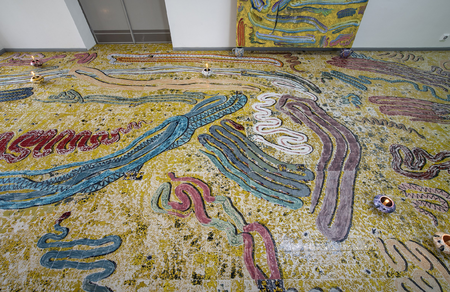 Merike Estna has discussed and tested the limits of painting as both idea and action over a long period of time. With her expressive style, the Estonian artist unites an abstract visual language that seems to be taken from our digital age with motifs from myths and folk tales. In her work, an inviting openness converges with an understated sense of humour, examining the tradition-laden structures that have come to be associated with the medium of painting in particular. The painterly medium is allowed to expand beyond frame and canvas, taking over both the exhibition space and the human body. The works occasionally function as props or objects and take the shape of benches, tables, floor or wearable items of clothing. Through social and performative elements, the viewer is coaxed into mutual, at times subtle participation.