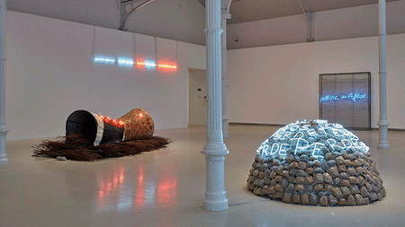 Merz’s practice, linked to Arte Povera, incorporates different key characteristics that the coetaneous art critic Germano Celant identified with this movement: in addition to its opposition to the post-industrial society of consumerism, we find a conscious use of organic materials such as clay, branches, wax and coal. From the application of these materials stem some of the recurring associations in the pre-modern imagery of the artist, for instance fire, lightning bolts and arrows; figures with mythical and geological meanings – the igloo, the table, the spiral, the river; or ancestral animals like the rhinoceros and the crocodile. These motifs, coupled with the idea of the nomad, run through the breadth of the artist’s poetics, vindicating lifestyles in consonance with nature that resist the predatory schemes of capitalist modernity. Thus, the search for mythology distinguished Merz’s work from his kindred contemporaries, for his archaism bore no relation to a melancholic yearning for the past, but instead was related to a razor-sharp critique of industrial and consumerist modernity.  Â