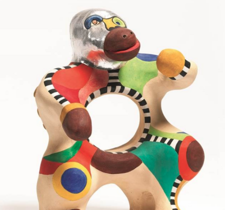The exhibition Joy of Living brings together sculpture, works on paper and jewellery that demonstrate Saint Phalle’s enthusiasm for the natural world. It features original works on paper depicting animals, such as Gorilla (undated) and Monkey with Child (1995); bird sculptures from the mid-1970s; and works that reference the biblical story of the serpent as seducer, such as Snake Mirror (1998). Saint Phalle found strength and recovery in creativity and nature after a troubled early life.