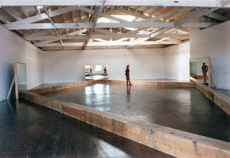 Bild: Robert Morris, Untitled (Portland Mirrors), 1977, Four mirrors, each 72 x 96 inches, with 12 inch square fir timbers of varying lengths, Installation at the Portland Center for the Visual Arts, Oregon, March 1977, Courtesy Castelli Gallery, New York
