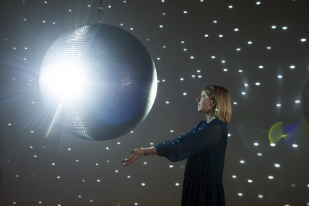 Image: Katie PATERSON (b. 1981) Totality, 2016 Printed mirrorball, motor, lights, 85.00 cm diameter sphere, Installation view at the Scottish National Gallery of Modern Art, with the artist, 2019 Photo: Neil Hanna