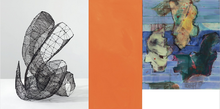 Die Ausstellung „Wandernder Fokus“ präsentiert zwei Künstler, die in ihrem Werk jeweils mit modularen Versatzstücken jonglieren. Martin Conrad benutzt hierfür in seinen Bildern sein umfangreiches zeichnerisches Kompendium, um das herum er seine Bildwelten komponiert. Bettina Lüdicke verbindet Linien aus Bronzedraht zu weiten durchlässigen Räumen und Formen, die sich immer wieder neu zusammenfügen. Beide Künstler schaffen so fragile, aber stabile Gebilde, deren Komponenten in einem energetischen Gleichgewicht stehen. Die plastischen Linien im Raum, die gezeichneten Linien im Bildraum entspannen jeweils werkimmanente Dialoge wie auch miteinander im Ausstellungskontext „Wandernder Fokus“.
