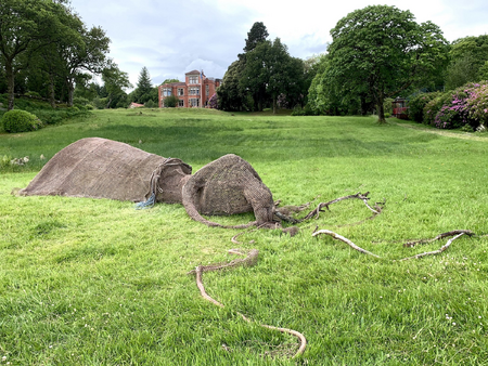 Kathy Bruce is a international environmental artist based in Scotland. In tandem with Scotland’s Year of Stories 2022, the theme of her sculptures at Caol Ruadh, are inspired by the Children’s book “Three Ladies Beside the Sea” by Rhoda Levine illustrated by Edward Gorey. These Edwardian heroines came to Bruce’s mind as she reflected on the dramatic setting of the gardens, house and sea views at Caol Ruadh, high on the hills above the Kyles of Bute. Bruce has created site-specific bamboo and willow sculptures on the park grounds to correspond to the features of the landscape. Her practice is a response to the natural environment that reflects on particular geographic sites within the context of poetry, literature and mythology. The natural organic materials  bamboo and willow was cut locally from Caol Ruadh and the Ardintinny Walled Garden. The emphasis of her sculptural work evokes the mythologies of women in Nature.