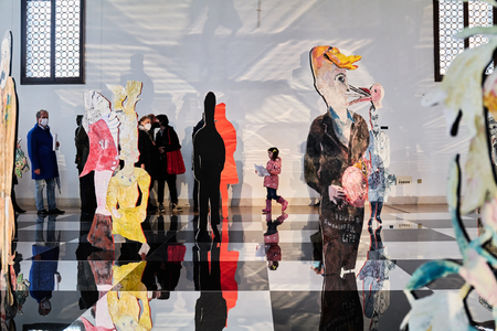 Bild: The Chess Game, 2022, Installationsansicht KUB in Venedig, 1. Obergeschoss Scuola di San Pasquale, 2022, Foto: Miro Kuzmanovic, Courtesy of the artist, © Anna Boghiguian, Kunsthaus Bregenz