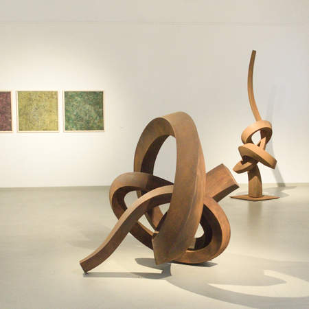 Die keilförmigen, zu beiden Enden sich vergrößernden Querschnitte der ineinander verschlungenen Skulptur treten durch ihre Formgebung in einen Dialog. Reduziert auf klare, abstrahierte Formen lädt das Werke dazu ein, die durch Licht und Schatten akzentuierten Bögen, Verdrehungen und Rundungen auf sich wirken zulassen und dabei zu eigenen Interpretationen zu gelangen. Die geschmeidige Kontur evoziert Leichtigkeit, der jedoch die zähe Härte des verwendeten Stahls diametral entgegensteht. Unterstrichen wird dieser Eindruck durch die edel wirkende oxidierte Oberfläche der im Innen- als auch im Außenbereich positionierbaren Skulptur.