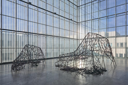 Eigens für die große Terrasse des MdbK konzipiert Sandra Mujinga die Installation „Fleeting Home“ (Schwebendes Zuhause). Den von riesigen Glasflächen gerahmten Raum werden dabei monumentale Strukturen aus Metall und Stoffgeflecht bevölkern, die wie eine Gruppe von urtümlichen Organismen in Bewegung anmuten. Diese Boten aus einer anderen Welt streifen uns flüchtig auf ihrer Reise, so scheint es, um uns dann mit existentiellen Fragen nach unserer eigenen Spezies und deren Zukunft zurückzulassen.