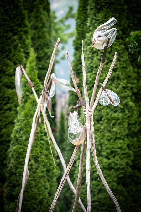 In 2012, an artist converges on a consortium in Gargazzone shortly after a large fire and selects some solid fragments from the melting of bins with apples. In 2013, he assembles the various parts of polyethylene H into a sculptural work with a Nordic green colour, shaping them into a kind of wall, a symbolic border between monoculture and biodiversity. I dedicate this artistic installation to Armin Bernhard, sharing one of his many dreams: the creation in the western part of Südtirol of an Eco-region, a biosphere, the 'Bio Region Malles', which incorporates not only the upper Vinschgau in Italy but also the Lower Engiadina/Val Müstair region in Switzerland and the Landeck district in Austria.