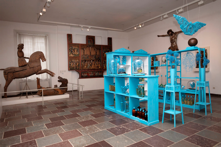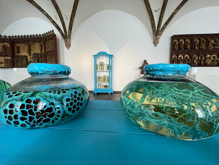 Einst wollte man mit den Kunst- und Wunderkammern die ganze Welt in einen Raum holen, erforschen und verstehen. Die versammelten Objekte spiegelten den (damals bekannten) Kosmos wider. Nun entsteht durch Anja Schindlers Werke ein neuer „Spiegel der Welt“. Vergangenheit, Gegenwart und Zukunft treten in Dialog. Unsere Besucher*innen sind eingeladen, sich entlang der leuchtend blauen Kunstinstallationen über zwei Stockwerke auf eine Entdeckungsreise zu begeben, zu Staunen und zu Bewundern.