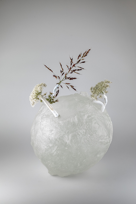 Stemming from each sculpture are delicate branches created and lamp blown by Maestro Vittorio Costantini, a Burano island native deeply attached to the beauty of Venice, the lagoon and to the abundance and variety of flowers, birds, butterflies, insects and marine creatures they harbour. His meticulous and exquisite creations, delicate and precious microcosms, have garnered him widespread recognition. The wild flowers in the Baumwelten are handpicked by Janine on the island of St Erasmo, a short boat ride away, to further underline the beauty of natureâs interconnectivity.