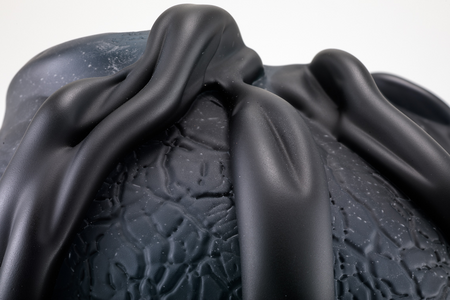 Diese „Baumwelten” nehmen viele Formen an: Einige sind aus Bronze oder Glas gegossen, andere bleiben aus Silikon oder verwandeln sich in Zement. Der Prozess schafft oft unerwartete Öffnungen, die sowohl das Auge als auch die Hand dazu einladen, das zarte, glatte Innere zu entdecken.
