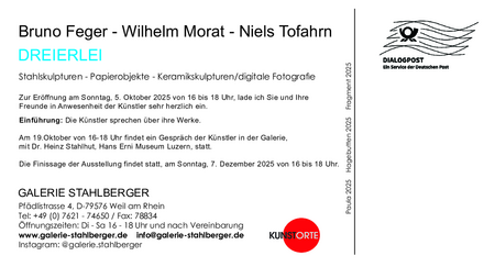Am 19. Oktober von 16 - 18 Uhr findet ein Gespräch der Künstler in der Galerie mit Dr. Heinz Stahlhut, Hans Erni Museum Luzern, statt.