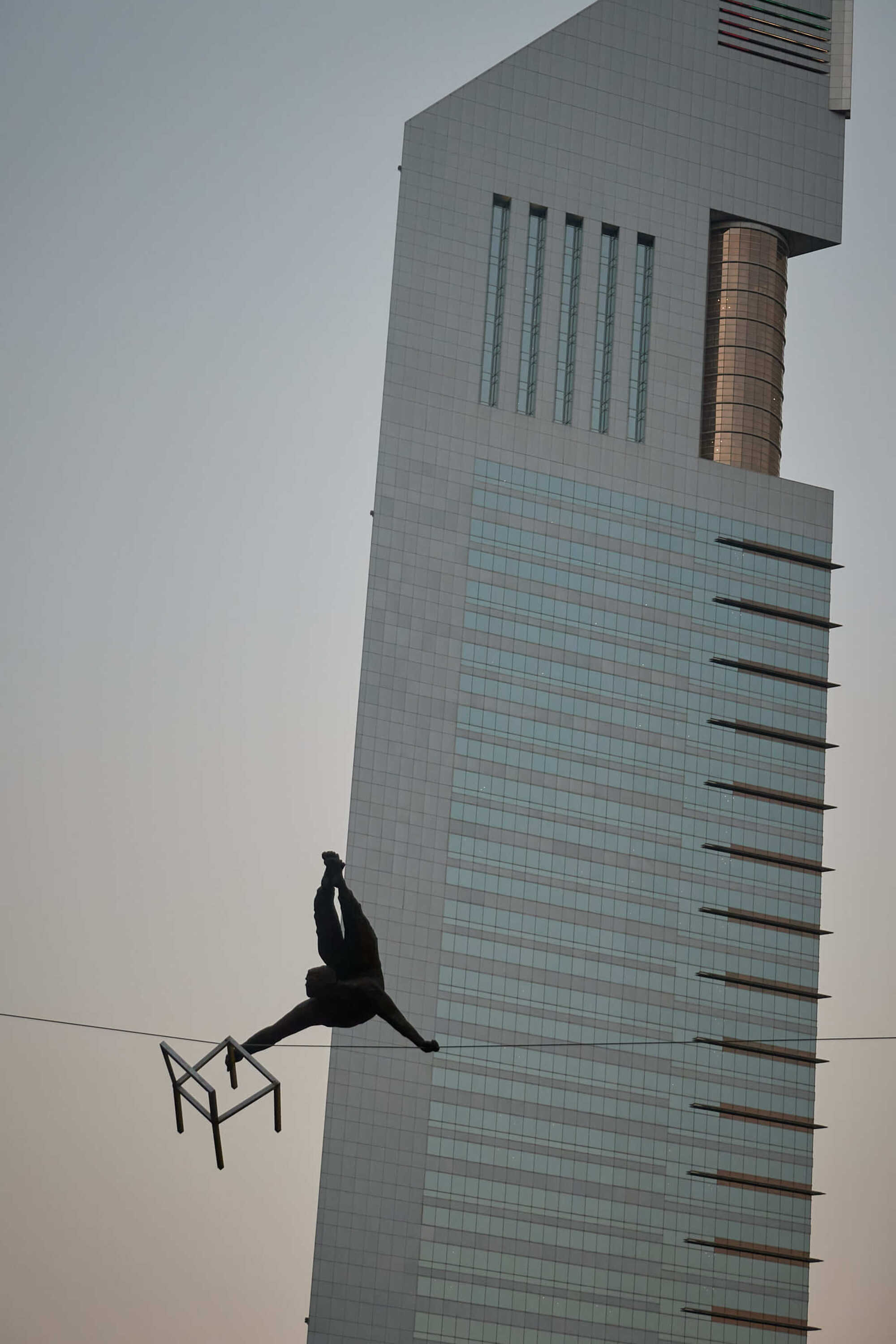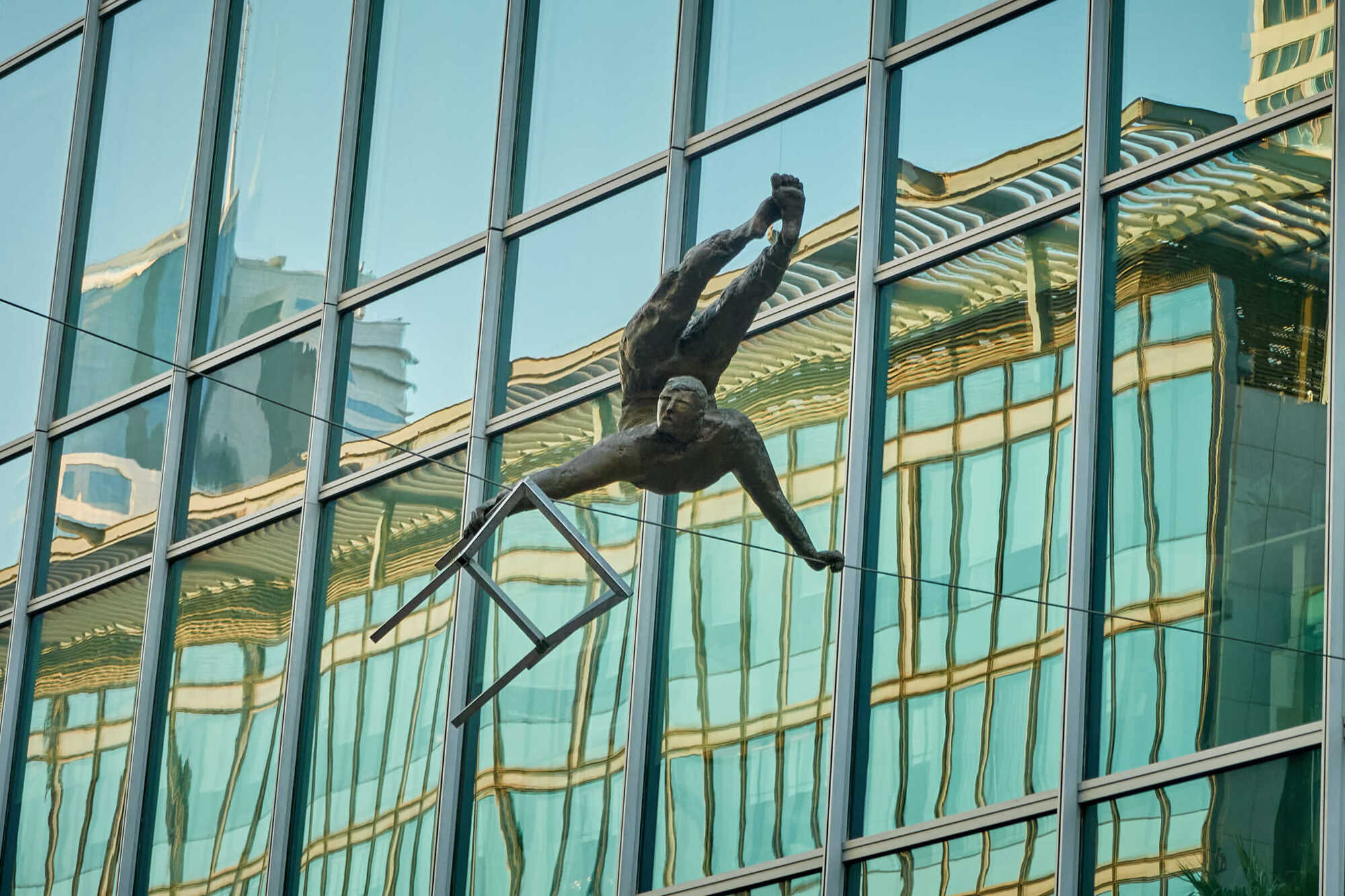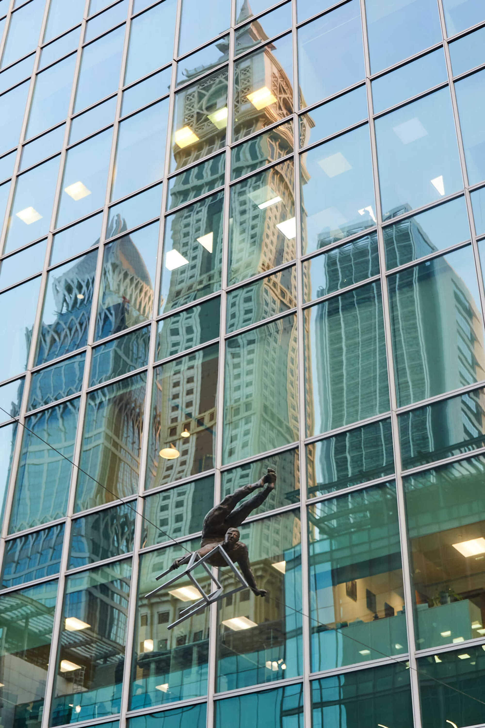 The exhibition also included works such as Duo, Entangled and Acrobat with a Chair, exploring interpersonal relationships, tensions and dependencies, as well as Deep Plunge, which, together with Entangled, was placed in the semicircular waters surrounding the DIFC Main Gate.
