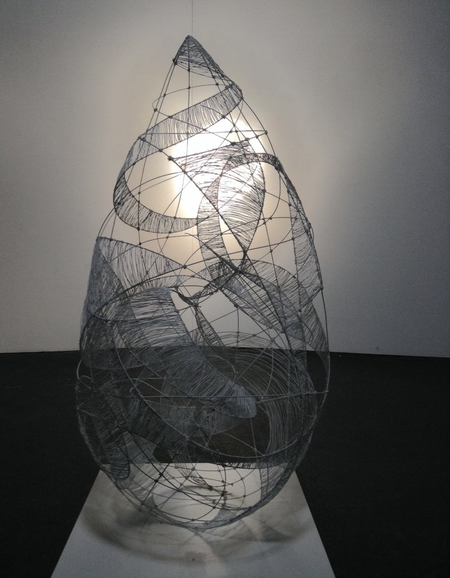 Bettina Lüdickes DROP ist stets auf Wanderschaft und erlaubt in jedem neuen Kontext neue Perspektiven. Diese Vielseitigkeit macht das Werk so spannend und lässt den Betrachter innehalten – vielleicht auch seine Perspektive überdenken. Schließlich wirkt das filigrane Kupfergeflecht in einer Winterlandschaft ganz anders als im herbstlichen Wald. Oder was sehen Sie?