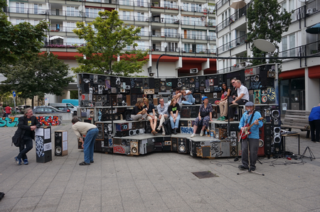 Benoît Maubrey: SPEAKERS ARENA. A Speakers Corner for Berlin (2019). Participative public sculpture made out of 320 connected loudspeakers that people can use to express themselves