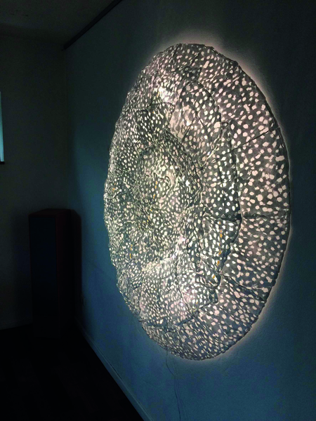 Verena Friedrich: contemplation. Lichtobjekt. Draht, Tyvek perforiert, LED, ø 160 cm 2017