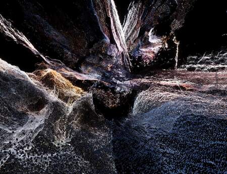 Die Installation Borderlands (2023) ist in Zusammenarbeit mit der Klangkünstlerin Anni Nöps entstanden. Wir haben objektbasiertes Audio und kanalbasiertes Audio in einer 20- bis 30-minütigen Schleife verwendet. Für uns war Borderlands ein Versuch, einen Raum „an der Grenze des Wahrnehmbaren“ zu schaffen. Das Konzept der Grenzbereiche findet sich in diesem Werk in mehrfacher Hinsicht wieder. Wer das Dachgeschoss des Museums betrat, sah sich nur mit Dunkelheit konfrontiert: Das war das Ende der Ausstellung. In den unteren Räumen konnte man eine reale visuelle Welt mit den unterschiedlichsten Installationen entdecken, oben im Dachgeschoss tauchte man in eine imaginäre auditive Welt der Klangkunst und Musik ein. Mit virtueller Akustik und räumlichem Klang wurde die Illusion eines unendlichen Hörraums geschaffen, der sich in der Dunkelheit entfaltet und von traumartigen Klängen erfüllt wird. Es war eine bemerkenswerte Entscheidung des Museums, unser Kunstwerk, das ausschließlich aus Klang besteht, in die Ausstellung Ekstasis zu integrieren.