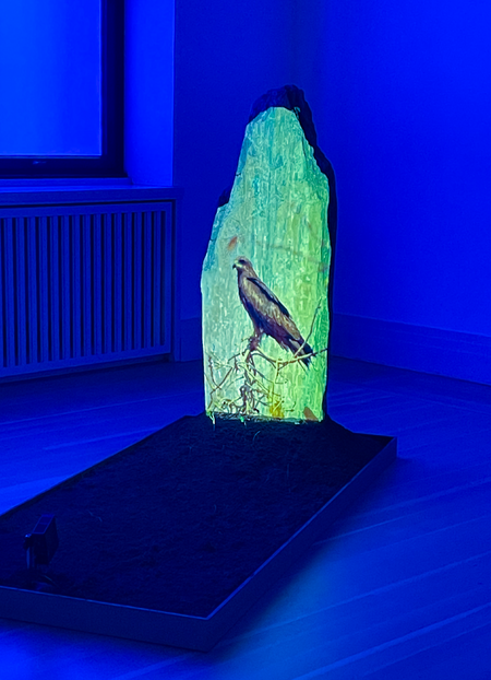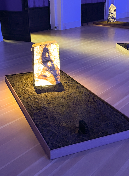 In ihrer eigens für den Gropius Bau konzipierten räumlichen Installation Salt Moon hat sie auf nachgebildete Grabzeichen tröstliche Naturfilme projiziert. Sie zeigt den Friedhof als ein Tor zur Trauer, aber auch als einen Ort der Ruhe, der Erholung und des Gedenkens. Die Steine werden zu Projektionsflächen für Aufnahmen vom Leben der Tiere auf dem Delhi Gate Cemetery, einem muslimischen Friedhof in Indiens Hauptstadt Neu-Delhi. Es entsteht ein Grenzraum der Trauer, der Erinnerung und der Sehnsucht – ein Impuls, die Liebe der Abwesenden zu würdigen.