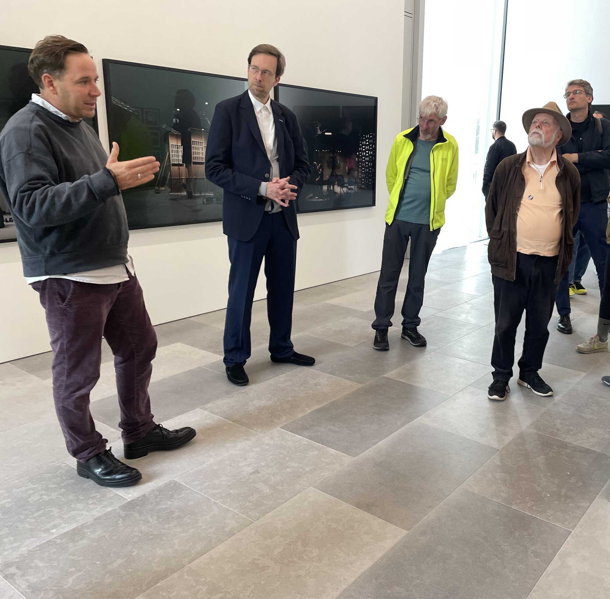 Ähnlich und doch ganz anders ist die Ausstellung im „Kunsthaus Dahlem“. Noch bis zum 06. Oktober 2024 ist dort Andreas Mühes Ausstellung „Bunker – Realer Raum der Geschichte“ zu sehen. Im ehemaligen Staatsatelier des Bildhauers Arno Breker; repräsentativ in bester Lage am Rande des Grunewalds im ehemaligen und heutigen „Eliteviertel“ Dahlem gelegen. Brekers Skulpturen für die Monumentalbauten der neuen Reichshauptstadt Germania sollten dort entstehen. Nach dem Zeiten Weltkrieg arbeiteten Emilio Vedova, Bernhard Heiliger und Wolf Vostell in diesen Räumen. Bis 2014 hatten hier Stipendiat*innen des DAAD ihre Ateliers.