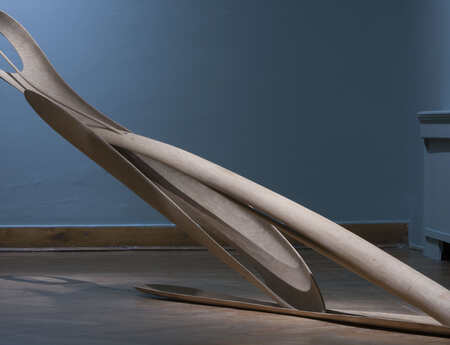 Isabelle Waldbergs (1911–1990) facettenreiches Œuvre reicht von filigranen linearen Strukturen aus Buchenholz über abstrakte Bronzeplastiken bis hin zu Collagen. Ihre Skulpturen finden sich in der Ausstellung auf weißen Sockeln. Die Werke sind zugunsten der leichteren Zuordnung jeweils auf andersfarbigen Sockeln gruppiert.