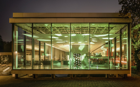 rota ist eine überdimensionale »Dream Machine«, ein Instrument, das durch Lichtimpulse unmittelbar auf unsere Gefühlswelt wirkt: Ein großer, glatt polierter Edelstahlzylinder rotiert um seine eigene Achse. Die Perforation seiner Oberfäche lässt weiße stroboskopartig flackernde Lichtreflexe entstehen, die in den Außenraum hinein strahlen. So verbinden sich Museum und öffentlicher Raum der Stadt zu einem künstlerischen Versuchslabor.