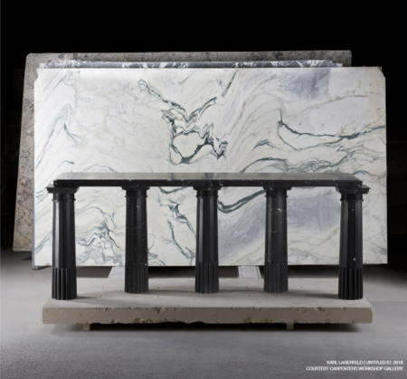 This was followed in 2018 by the opening of his first and last sculpture exhibition in Paris at the Carpenters Workshop Gallery. Here he presented his collection entitled Architectures, which includes tables, lamps, consoles, fountains and mirrors and, according to "Karl" - as the designer most recently liked to market himself, having turned his name into a brand - and which was inspired by antiquity and Greek architecture. To bring his pieces, which were created in collaboration with designer and architect Aline Asmar d'Amman, to life, he used natural stone - in fact two very special types. These two types of marble are "Arabescato Fantastico" and "Nero Marguina". And, as one would expect, the first of these two hasn't been mined for thirty years.