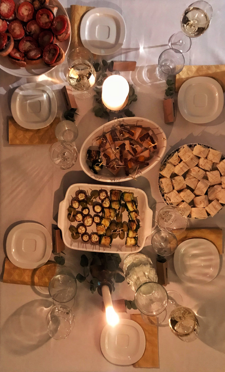 In order to avoid putting the responsibility of cooking and cleaning up after a large meal on one person, why not change location between courses? This ensures division of labour and integrates the after-dinner walk into the evening plan - or let's say between-courses-walk.
