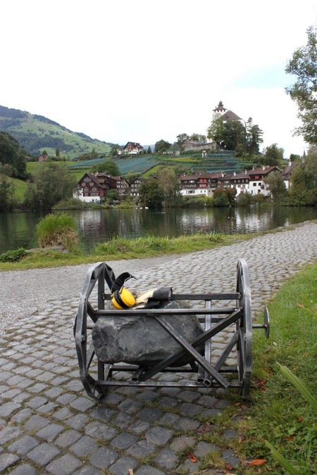 For example during his project A rolling stone (2017) he rolled a huge stone to Werdenberg Castle. Therefore the stone was put in an extra designed rolling cage.