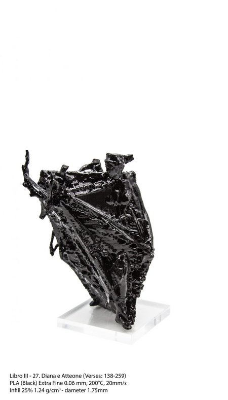 The second sculptural project in this series is entitled The Other Shape of Things - 2. Datamorphosis. It consists of 181 sculptures divided in 15 groups, called Libri (Books), based on the 15 books that comprise Ovid’s poem The Metamorphoses. Each sculpture takes the name of one of Ovid’s myths and is produced by forcing a computer to interpret Latin verses about metamorphosis as coding instructions for the production of new sculptural forms.