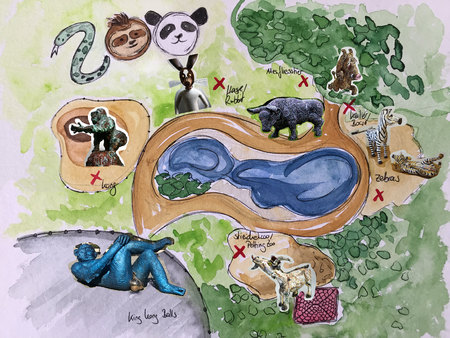 After weeks of dealing with women in art, we wonder if this greeting is a gentle reminder not to lose sight of men and other genders. Probably a matter of decency. With a little *plop* a plan of the zoo opens and Martina reads aloud what is written about the blue ape: