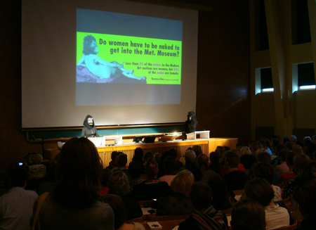 In April 2011 founder and CEO ArtShortCut Kira Sjöberg and I organized the Guerrilla Girls Nordic tour. Working with the founding member Frida Kahlo and Käthe Kollwitz* was a privilege. Their understanding and awareness of the gender imbalance in the art-world goes back decades - unfortunately not much has changed. In their statistics from 1985 one (1) woman artist had had a solo exhibition at a NYC Museum that year (Guggenheim, Metropolitan, MoMA,Whitney). In 2015, thirty years later, it was five women. In Sweden I showed the Guerrilla Girls around the sculpture hall of the Gothenburg Museum of Art and proudly announced that for the first time ever a young woman sculptor´s work had been bought by the museum, straight from her graduation exhibition. But in the presence of the Guerrilla Girls, Cajsa von Ziepel´s larger than life sculpture Seconds in Ecstasy, depicting a young scantily dressed girl swinging on a strippers pole, suddenly only seemed to confirm the group´s trademark question ”Do women have to be naked to get into the Met?”.